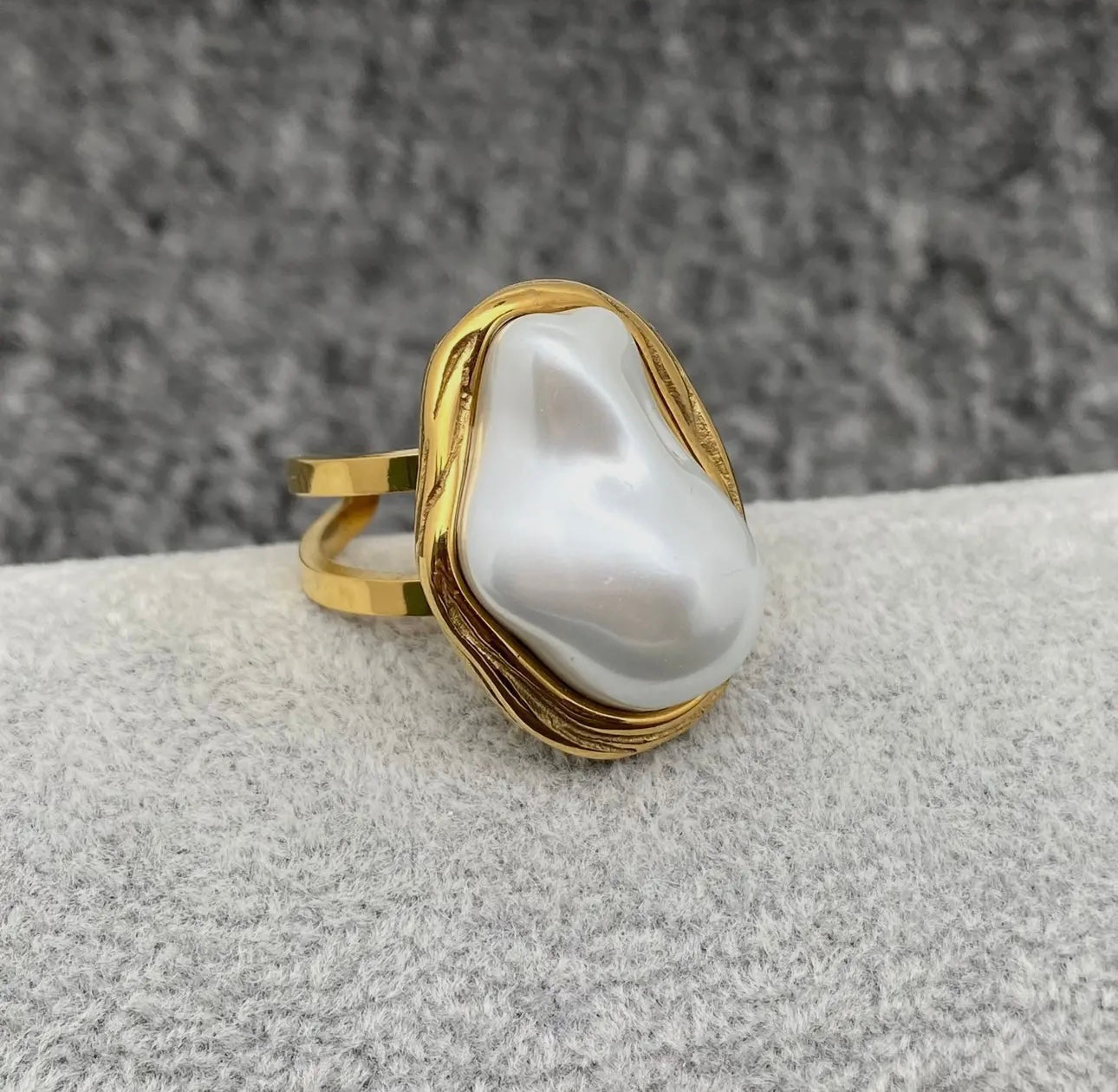 Baroque Pearl 18K Gold Plated Stainless Steel Ring