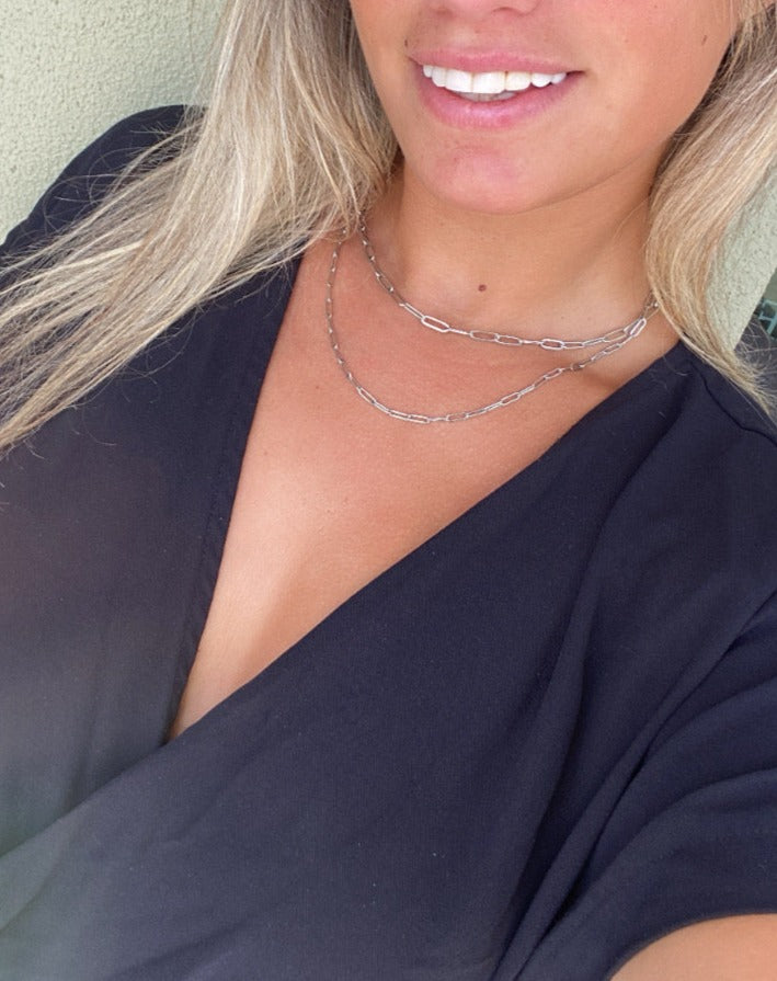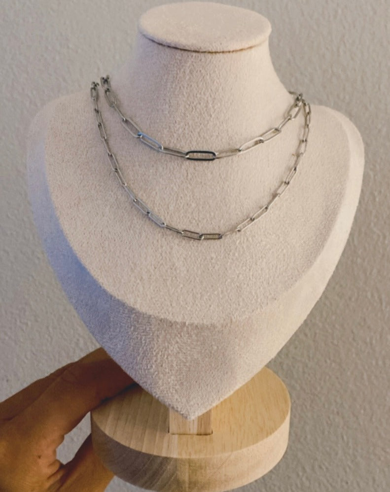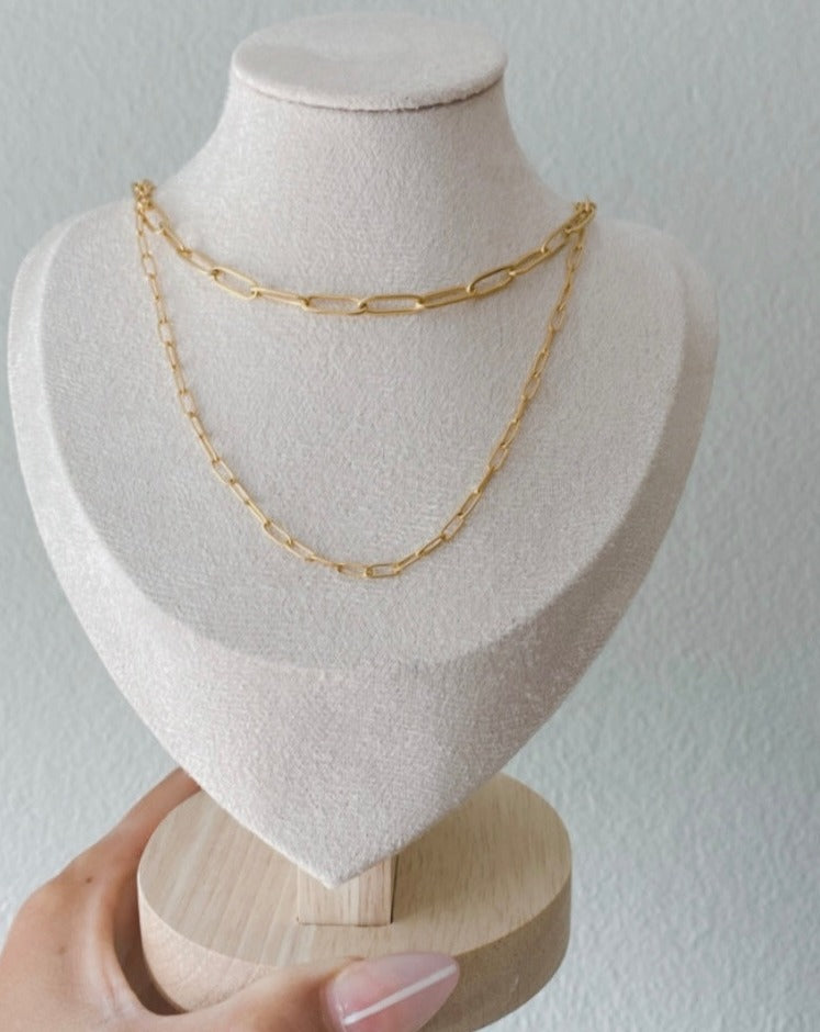 Double necklace Oval gold&silver , sterling steel + 18k real gold plated