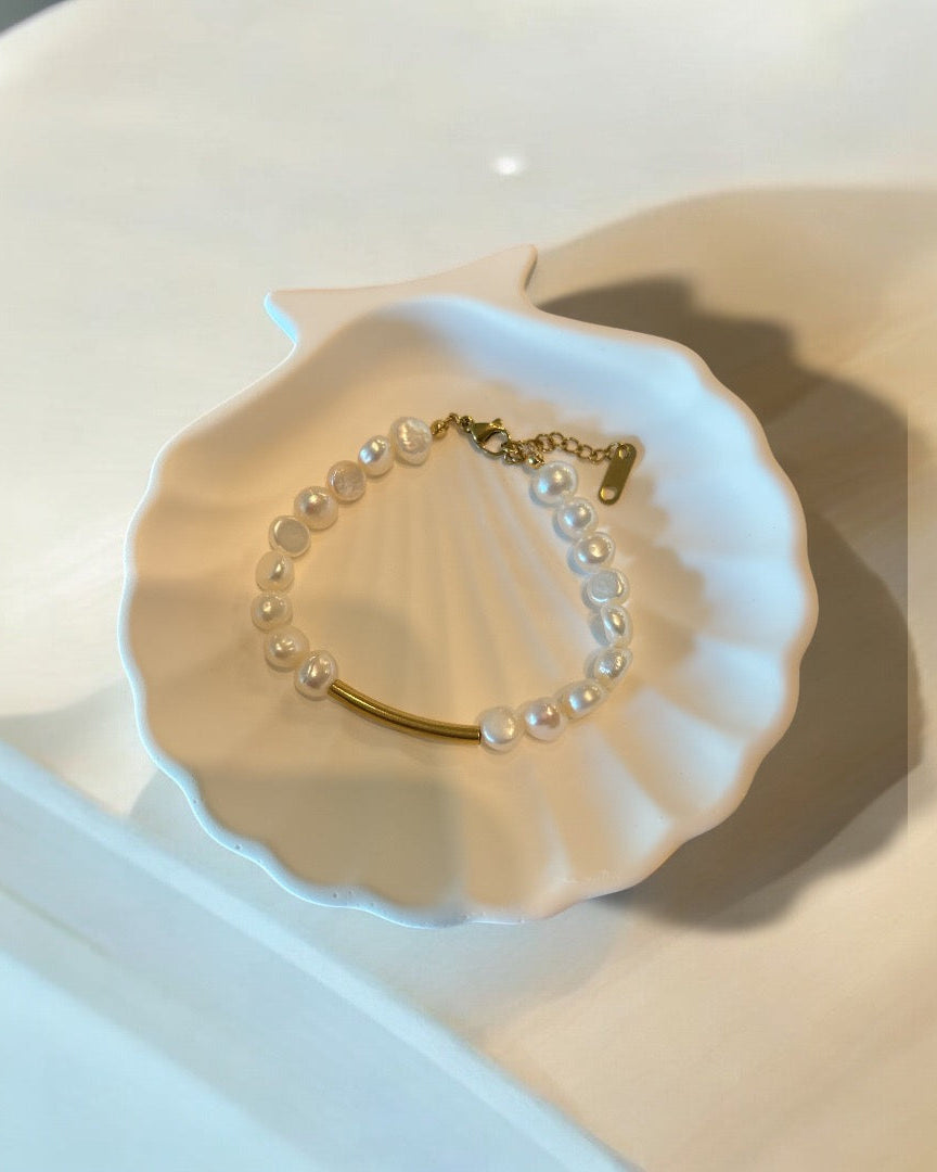 Freshwater pearl with Tube Spacer Beads Connector bracelet