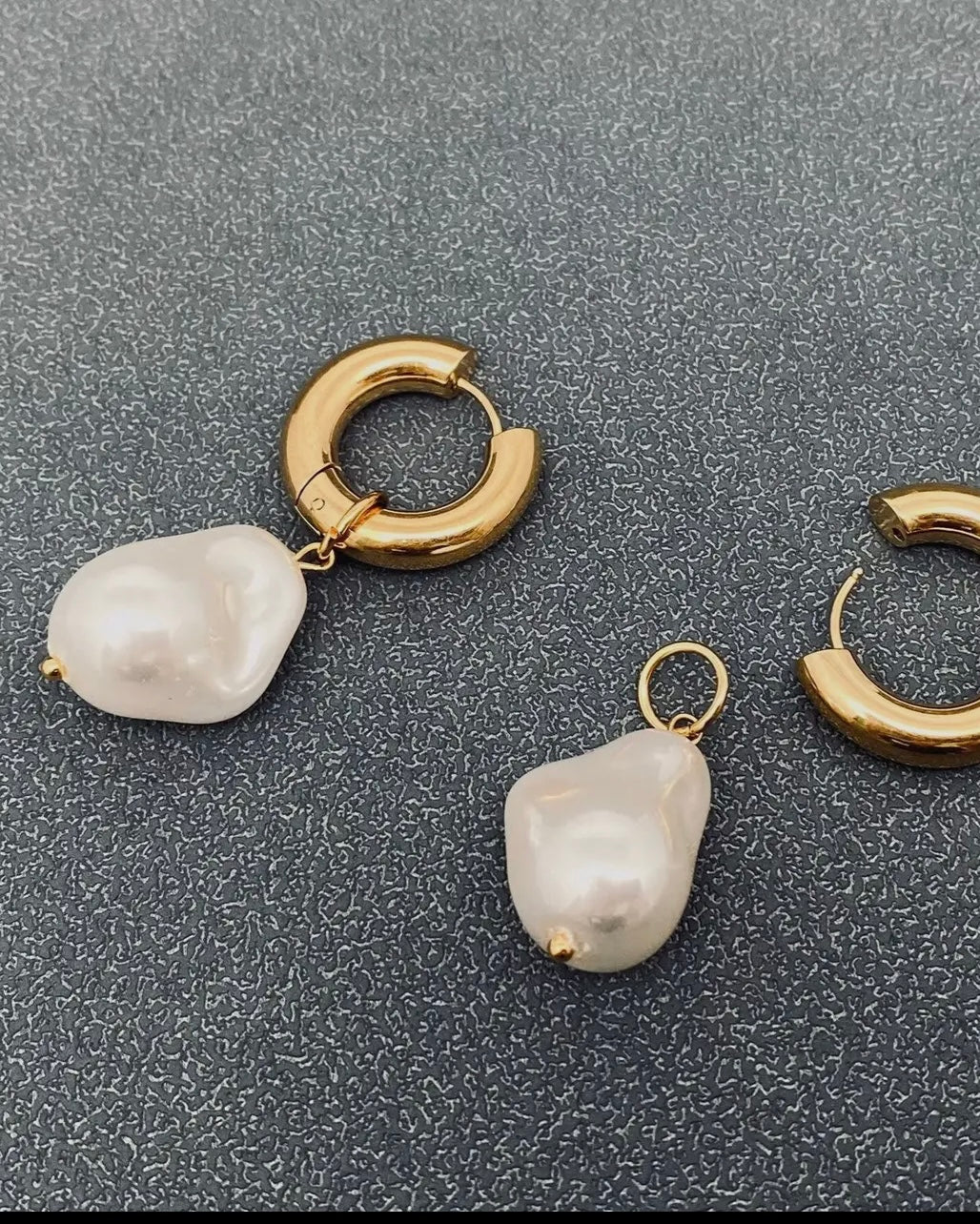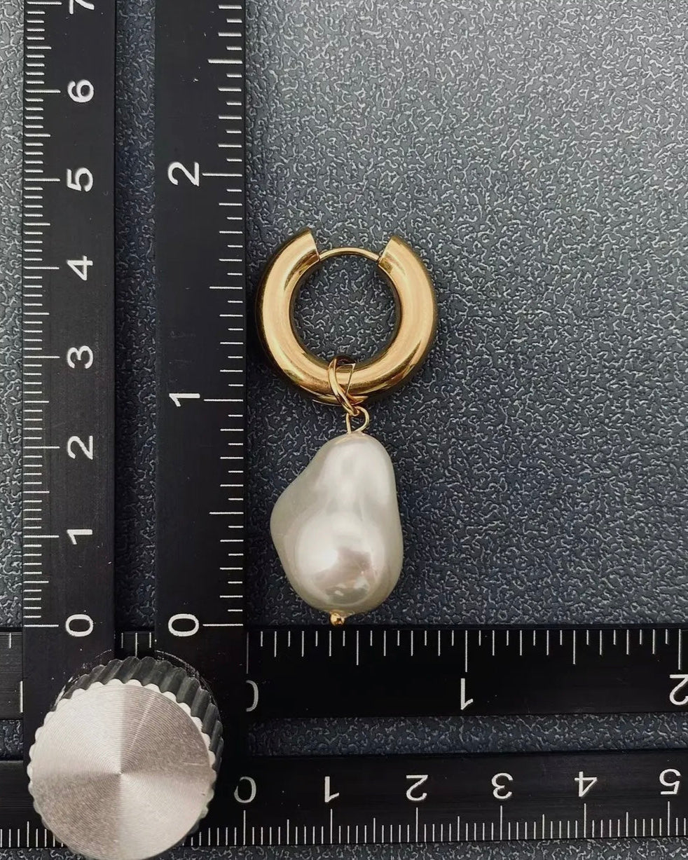 Pearl Charm Pendant 18K Stainless Steel Huggie Earrings