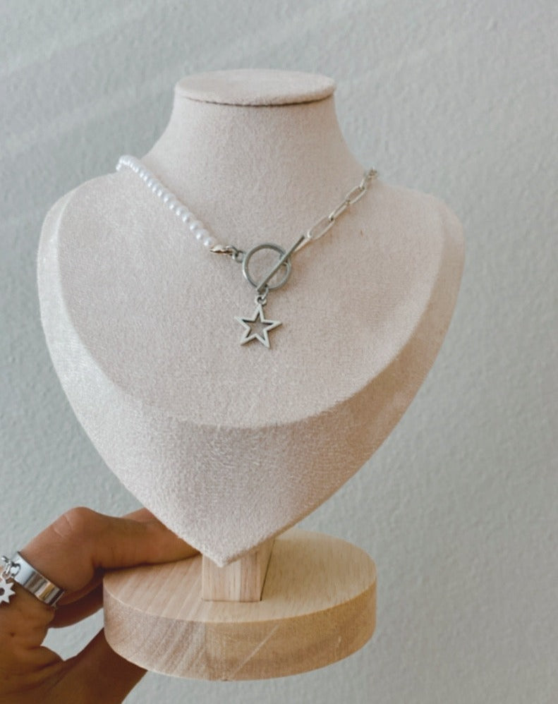 necklace Half pearl and half chain oval& star , with circular closure