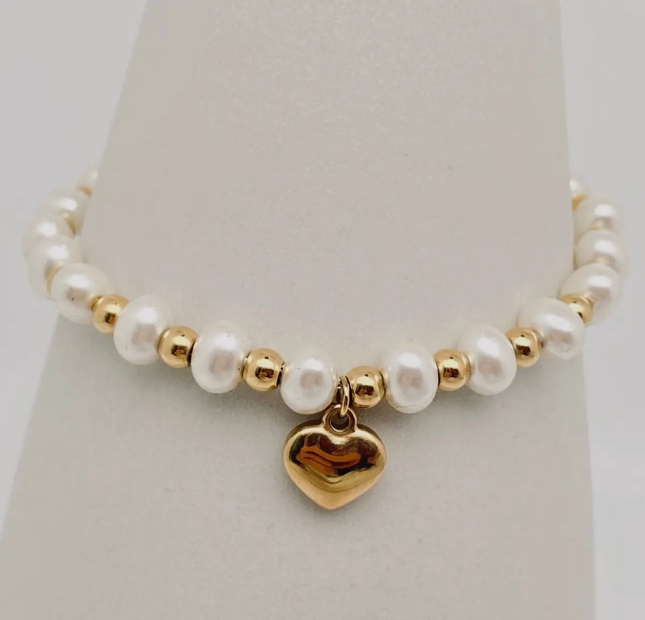 Stainless Steel Heart Pendant Pearl Beaded Bracelet