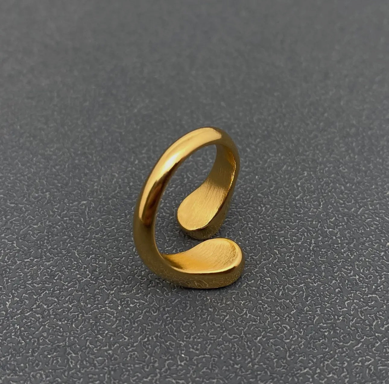 Turn heads with the Sunset Duo Ring, a bold and elegant statement piece featuring two teardrop-cut stones in warm, sunset-inspired tones. Set in a thick, high-shine gold-tone band, this open ring wraps gracefully around your finger for a chic and modern look. Made from waterproof, tarnish-free stainless steel for lasting beauty.