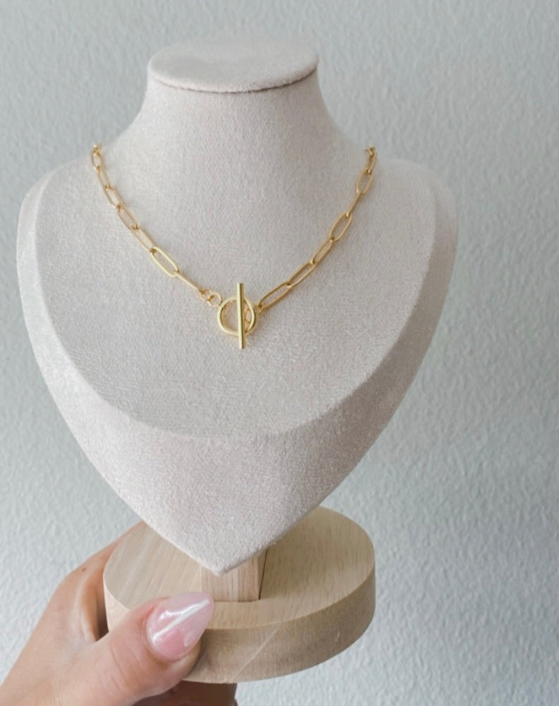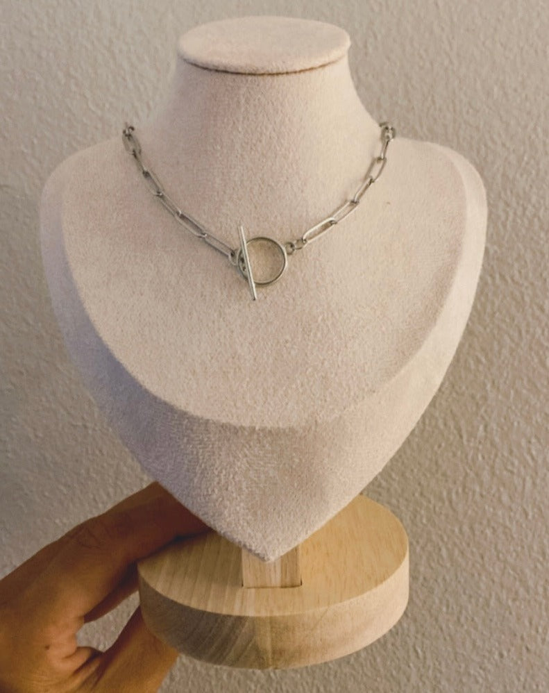 Oval necklace with circular closure
